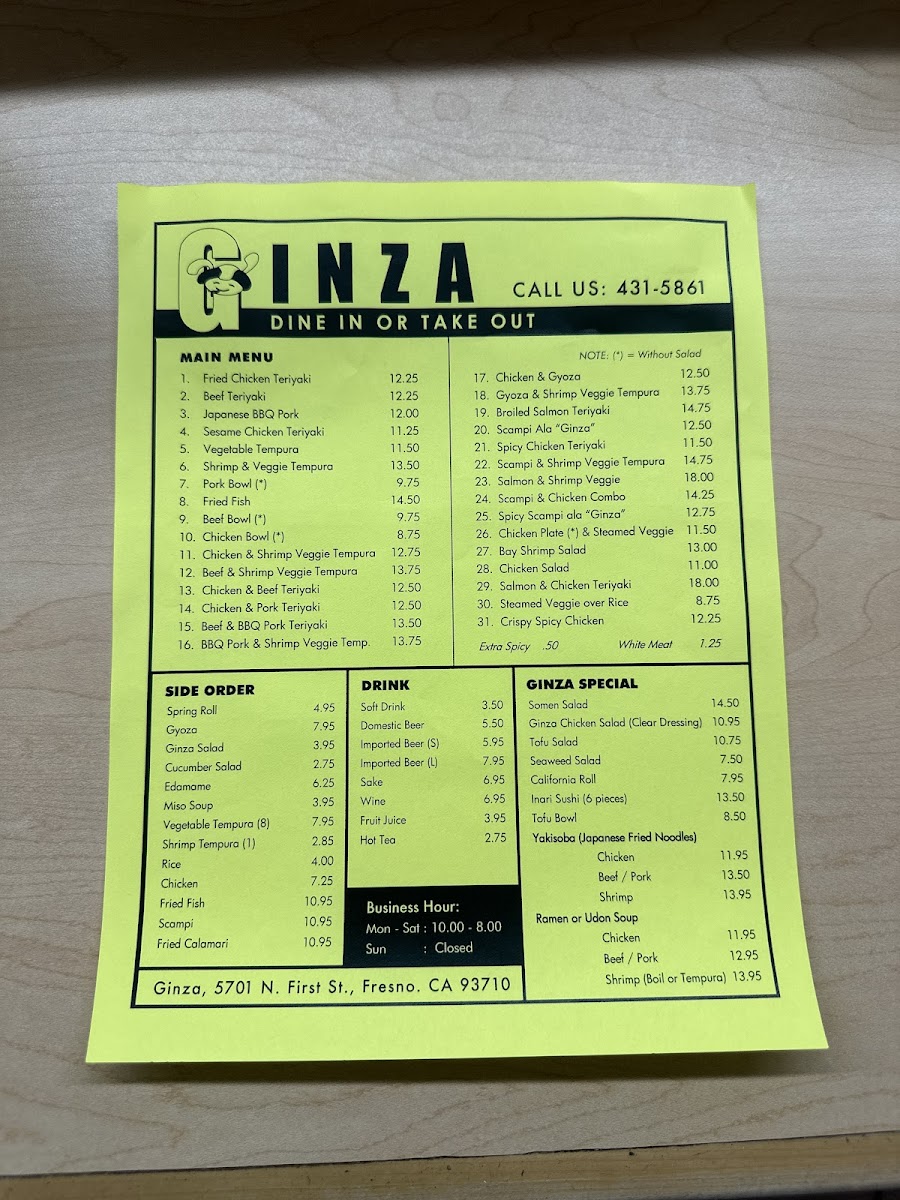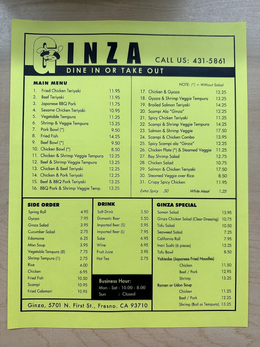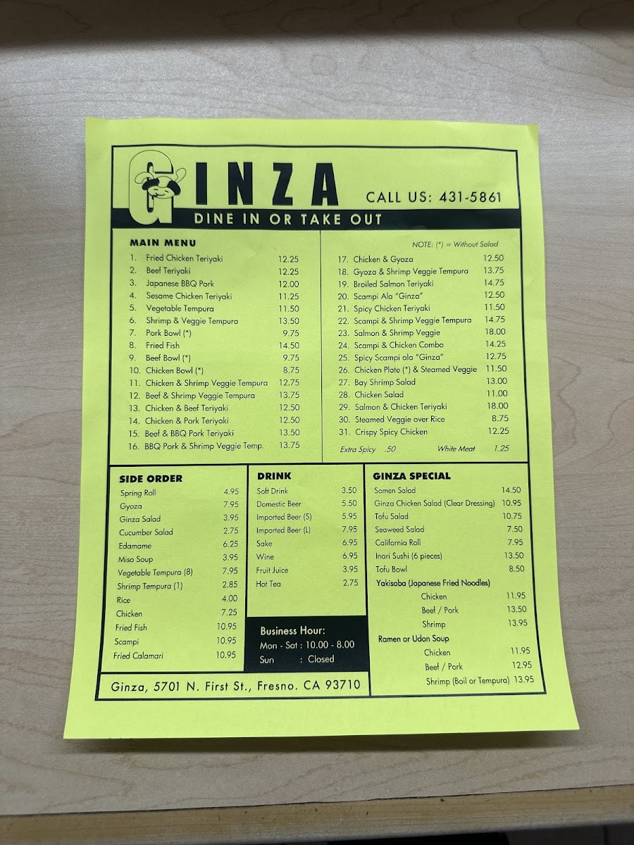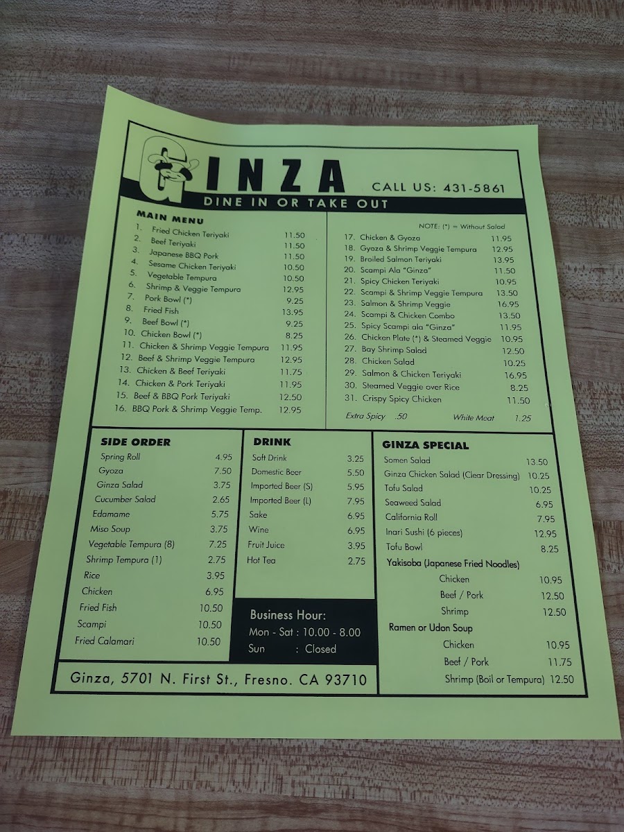 Ginza Gourmet Teriyaki House Menu